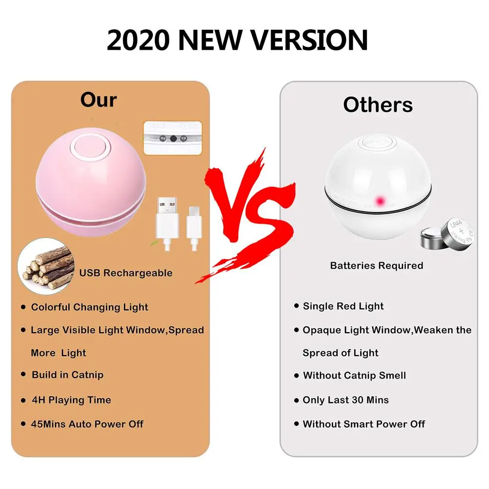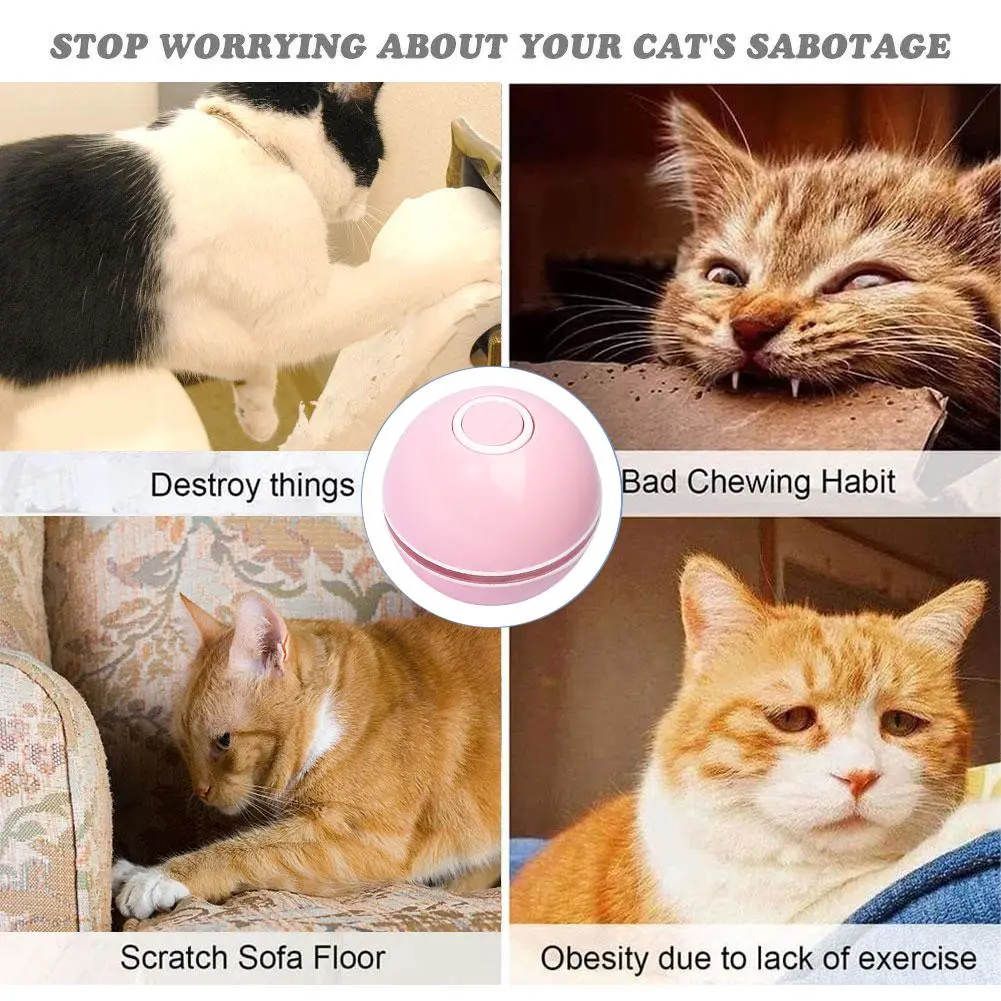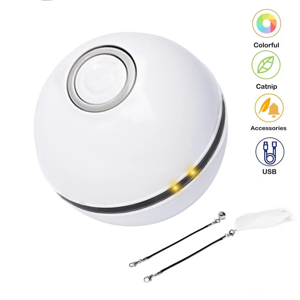 3. 360° rotating ball: After power on, the interactive cat toy will start to rotate 360° and color LED indicators. If it collides with walls, chairs, doors, etc., the ball will automatically change direction. No further help is needed.